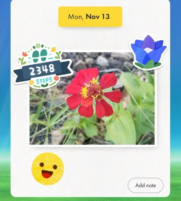 and i've also picked up pikmin bloom again :) walking around the same places everyday can get quite... monotonous. but i really like that pikmin bloom helps me out with the walks not feeling as boring as they seem to be. i also use the app as a journal of sorts. i take pics of whatever i find interesting (enough) to take a pic of. i think it's super cute.