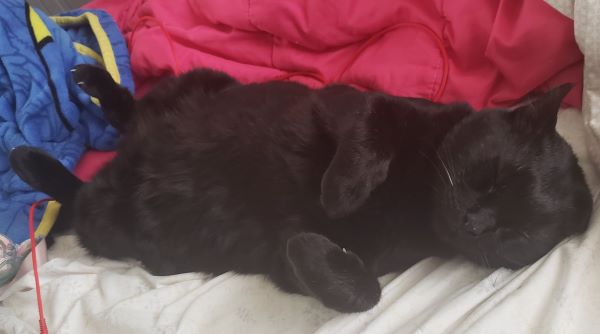 i remember the day that i met mizu vividly. a core memory. it was evening in october of 2010. i was taking a nap and suddenly my mom wakes me up and goes "hey look what i found" and she then proceeds to show me this black kitten that fits entirely on the palm of her hand. he was so tiny. my mom had just found mizu in our backyard, all alone and meowing. so! my mom decided we should keep him. but we've never had a kitten before! so 10 year old me was tasked with something very important. to research how the hell do you take care of a kitten on the world's slowest pc that had windows xp installed. i remember googling things like "what milk do kittens drink?", or "how do kittens pee?" it was wild. we did not know a single thing. but we knew that we had to keep him so he wouldnt be alone and lost outside. while i was googling stuff i kept him on my barbie house to make sure he didnt go anywhere while i was doing my research. and i find that so cute. he was such a cute little kitten. the next day we got some kitten formula, alongside a very small milk bottle so we could feed him. he was so so cute when we fed him. he was truly just a lil boy!!!! he would sleep on a cardboard box with a blanket right next to my bed. i would play with him so much. he was so playful.